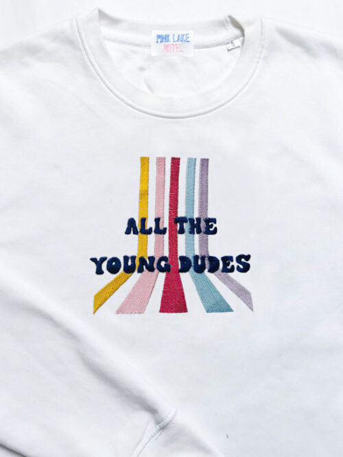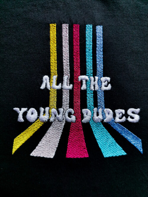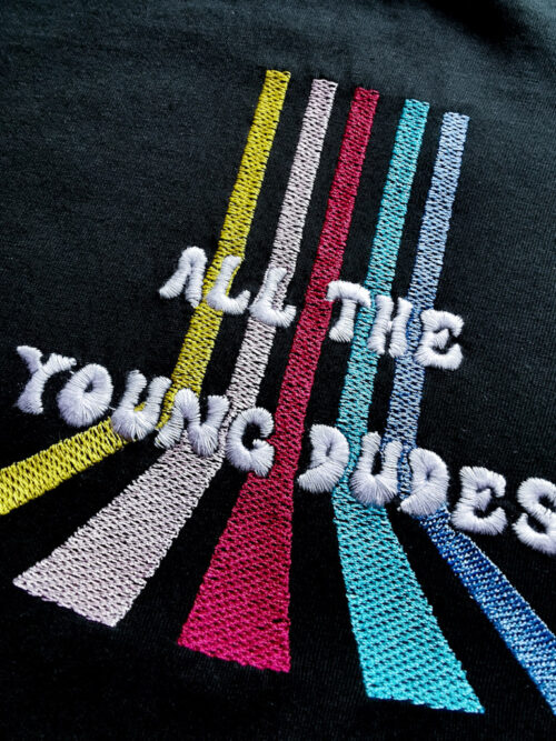 This garment is embroidered with “All the young dudes”, the fanfiction by MsKingBean89.
