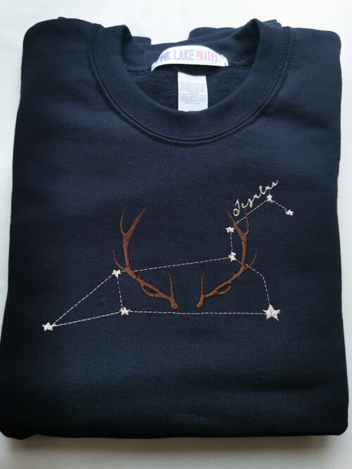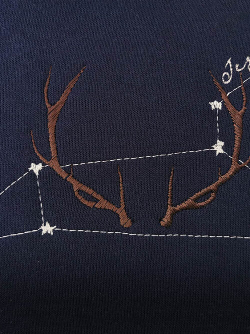 This garment is embroidered with Regulus constellation and James’ antlers.