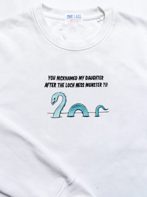 This garment is embroidered with the quote from Twilight “You nicknamed my daughter after the Loch Ness Monster ?!!”